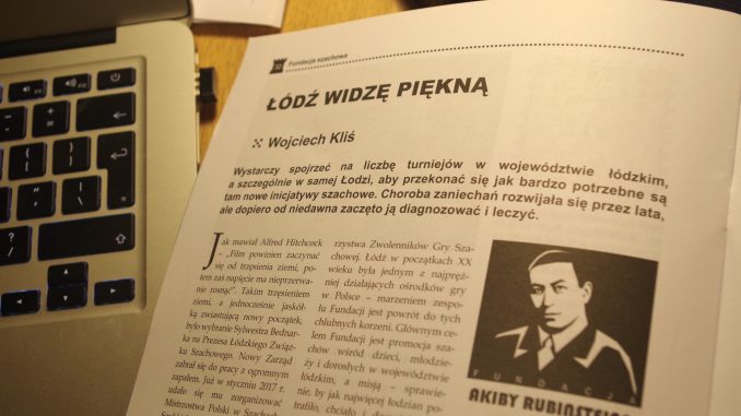 Jak mawiał Alfred Hitchcock – „Film powinien zaczynać się od trzęsienia ziemi, potem zaś napięcie ma nieprzerwanie rosnąć”. Takim trzęsieniem ziemi, a jednocześnie jaskółką zwiastującą nowy początek, było wybranie Sylwestra Bednarka na Prezesa Łódzkiego Związku Szachowego. Nowy Zarząd zabrał się do pracy z ogromnym zapałem. Już w styczniu 2017 r. udało się mu zorganizować Mistrzostwa Polski w Szachach Szybkich, które okazały się dużym sukcesem marketingowym i organizacyjnym. Nowy Prezes wykazał się wspaniałym zaangażowaniem i energią w odbudowywaniu pozycji województwa łódzkiego na szachowej arenie – zarażając swoją pasją innych. Oprócz dużych projektów Łódzki Związek Szachowy usilnie wspiera oddolne inicjatywy lokalne. Jedną z takich inicjatyw jest działalność Fundacji im. Akiby Rubinsteina[1].