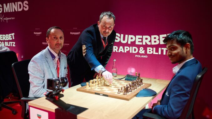 Veselin Topalov – do trzech razy sztuka! Tym razem jako jedyny w tej rundzie zakończył zwycięsko swój pojedynek. To jego pierwsza wygrana tego dnia oraz druga w całym turnieju. Niewyglądająca nazbyt interesująco końcówka partii Topalov – Praggnanandhaa okazała się jednak naszpikowana taktycznymi możliwościami wobec króla Praggnanandhy.