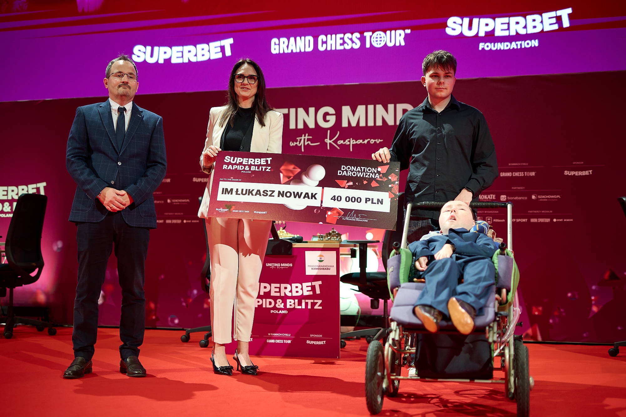 SuperbetGCTWarsaw_0430_fotRafalOleksiewicz_03 (1) IM Łukasz Nowak odbiera darowiznę. Inicjatywa godna pochwały! Fot./Rafał Oleksiejewicz