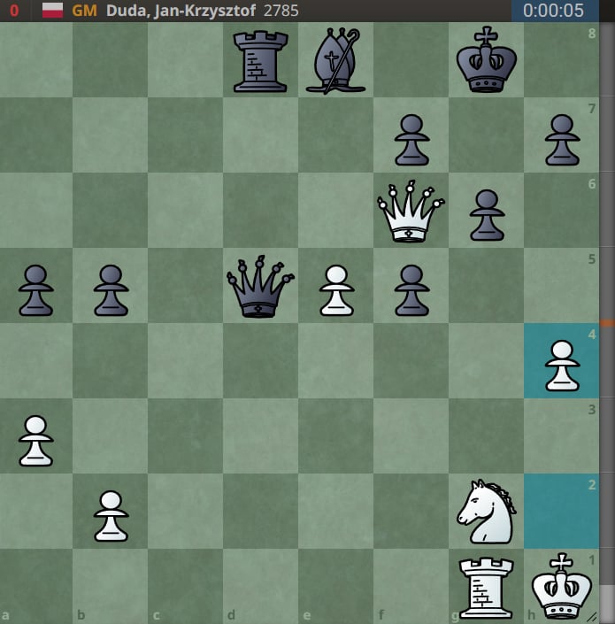 Wśród ofiar lidera turnieju znalazło się wielu graczy, w tym Jan Krzysztof-Duda, który zmierzył się z Fedoseevem w 3-ciej rundzie. Janek był po dwóch zwycięstwach ze specjalistami szachów błyskawicznych MVL-em oraz Firouzją. Po skomplikowanej grze środkowej w partii katalońskiej, Jankowi udało się ograć Rosjanina czarnym kolorem i na szachownicy stanęła, zdawać by się mogło, pozycja kompletnie wygrana dla naszego rodaka.