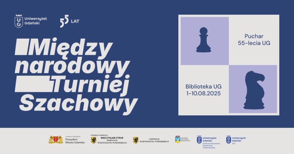 W dniach 1–10 sierpnia 2025 roku Uniwersytet Gdański zaprasza wszystkich pasjonatów królewskiej gry do udziału w nowym wydarzeniu na szachowej mapie Polski – Międzynarodowym Turnieju Szachowym o Puchar 55-lecia UG. Prawdziwy szachowy festiwal obejmie aż pięć turniejów!