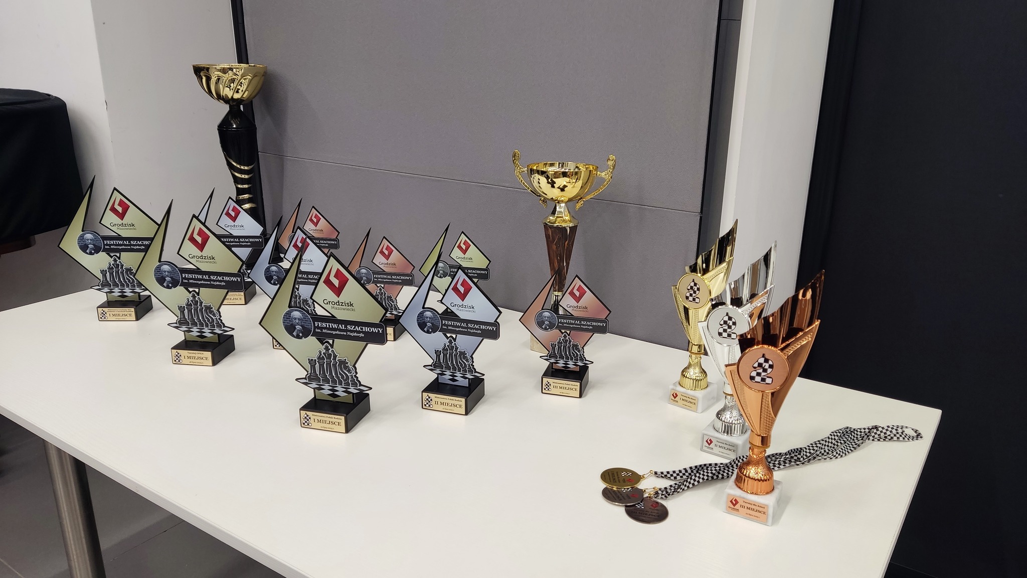 523511749_1223907092865468_3776081074619843096_n Organizatorzy zapewnili piękne trofea dla zwycięzców Festiwalu. Źródło: UKS Szachowa Dwójka Grodzisk Maz.